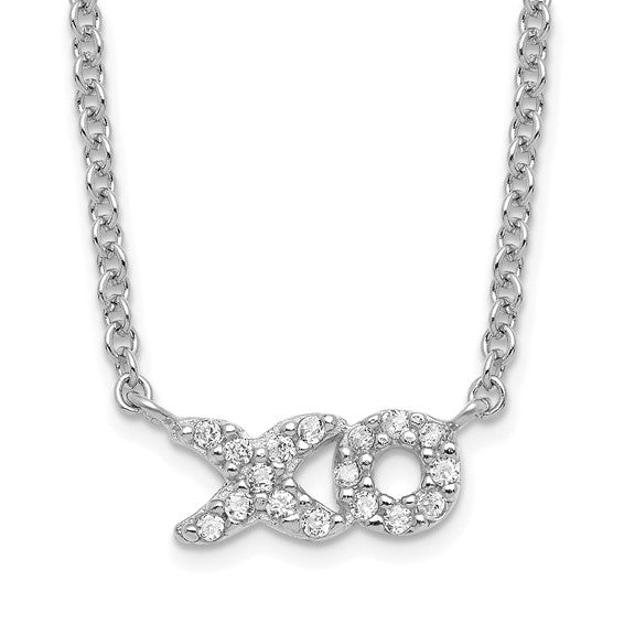 Sterling Silver Rhodium-plated CZ XO Word 18 inch Necklace N1123WPCZ-18